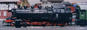 86 457 Vorbild: Tenderlokomotive für den Betrieb auf stark befahrenen Nebenstrecken der DR vorgesehen. Die Maschinen erreichten bis zu 80 km/h. Bei der DB wurden die Maschinen bis in die 70er Jahre eingesetzt. |